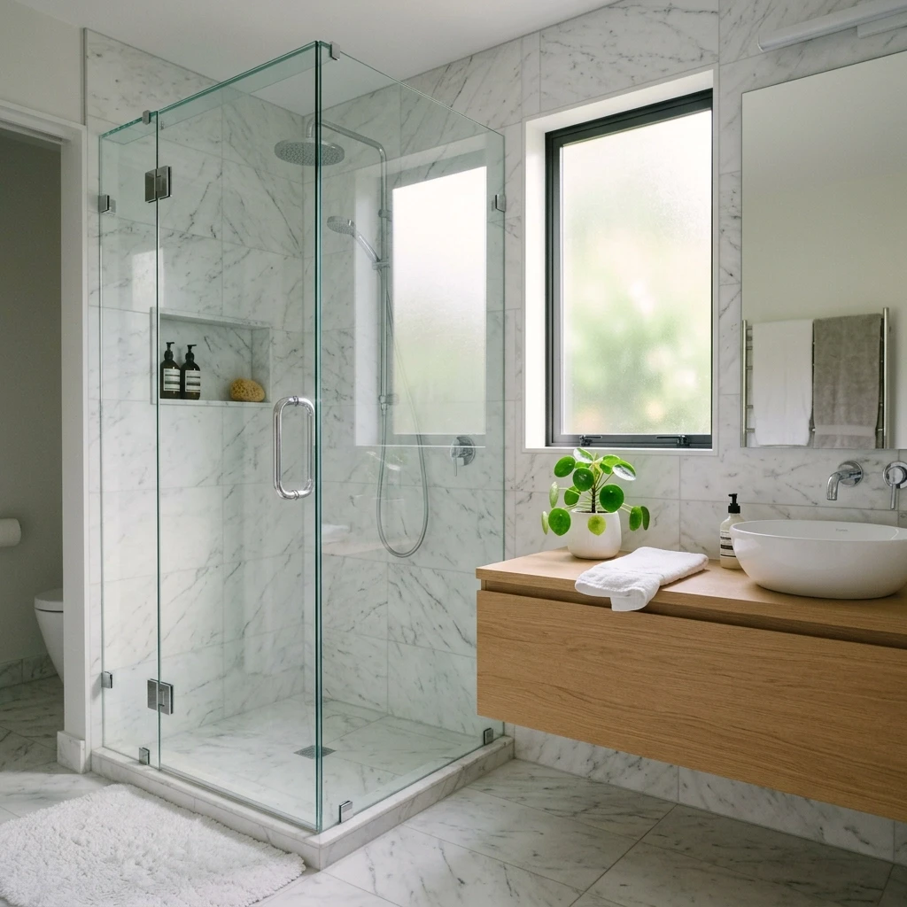 Custom frameless or framed glass showers designed for durability, precision fit, and a refined finish.