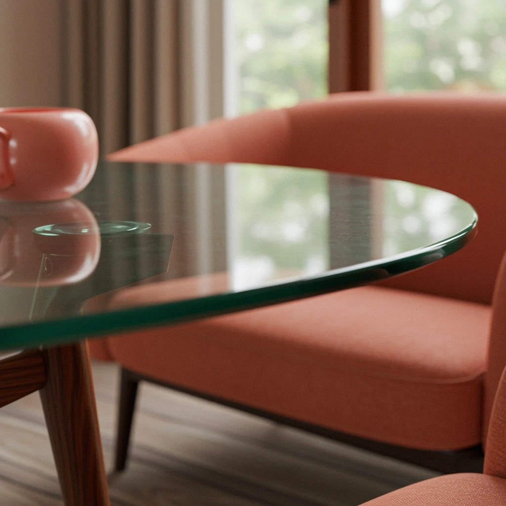 Cut-to-size glass surfaces with polished edges, available in clear, tinted, or frosted finishes.